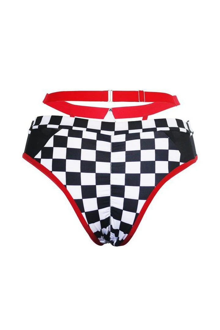 Take yourself to the 50s with these retro style checkered high waist strappy shorts.