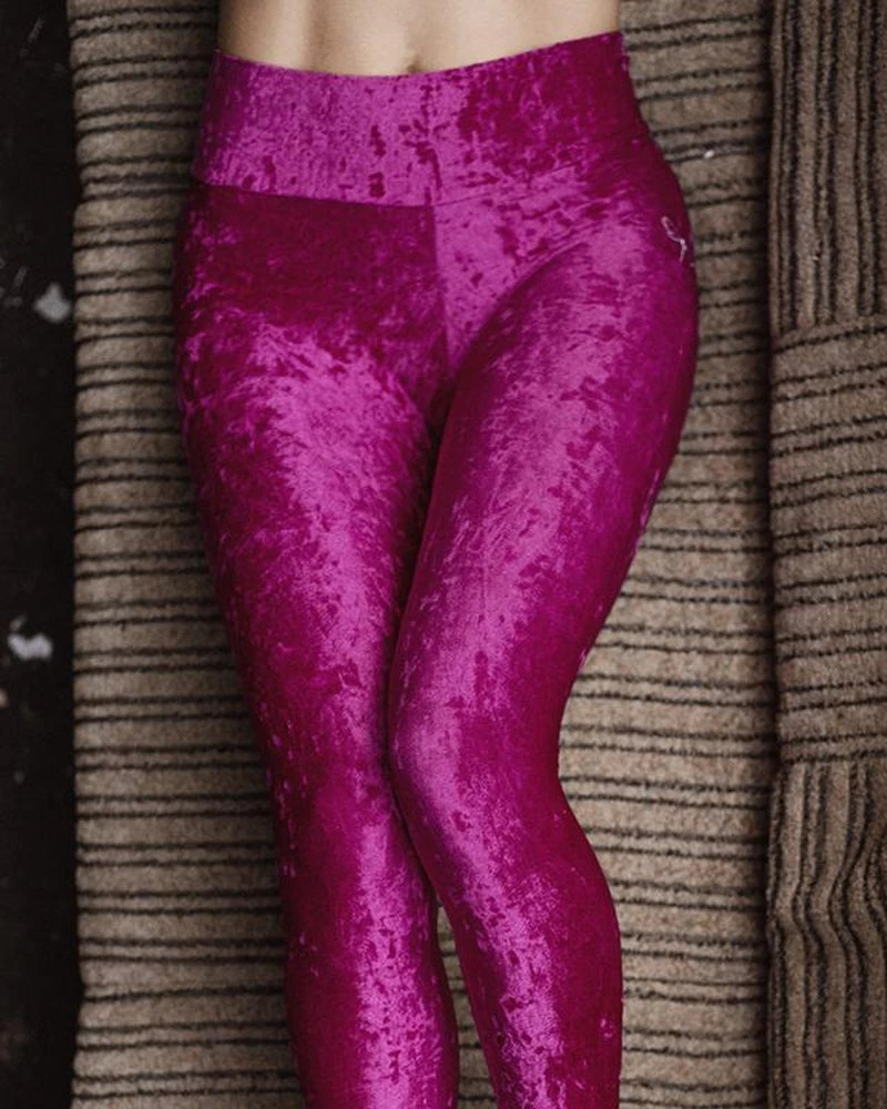 The velvet Adrianna leggingsย are high waisted and do not have any waistband, stopping them from cutting in and making them ultra comfortable.