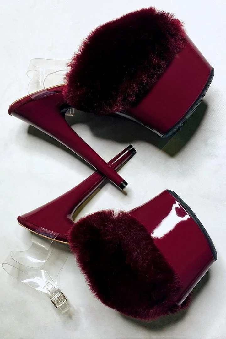 Sleek Merlot Red platform and the softest faux fur, we’ve levelled up your casual slides!