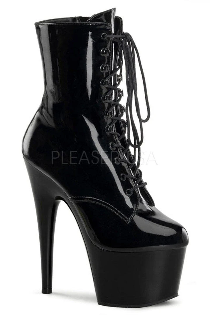 - Patent Black Platform Lace-Up Front Ankle Boot, Inside Zip Closure