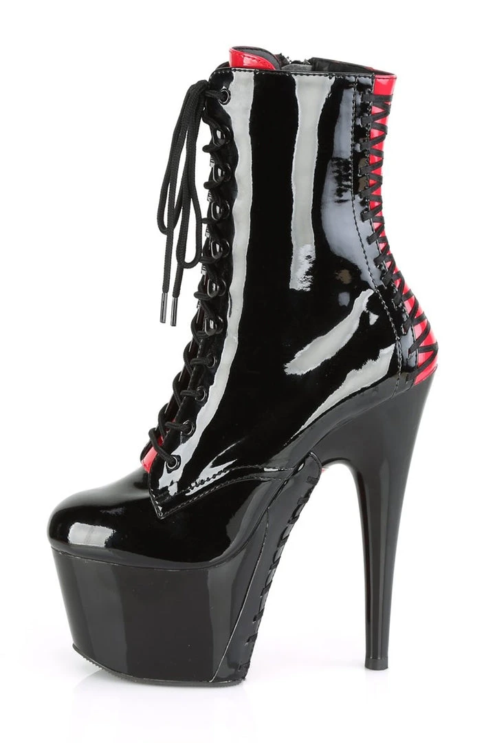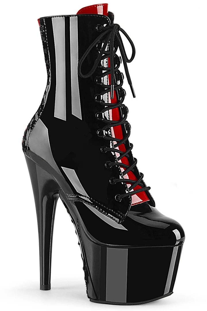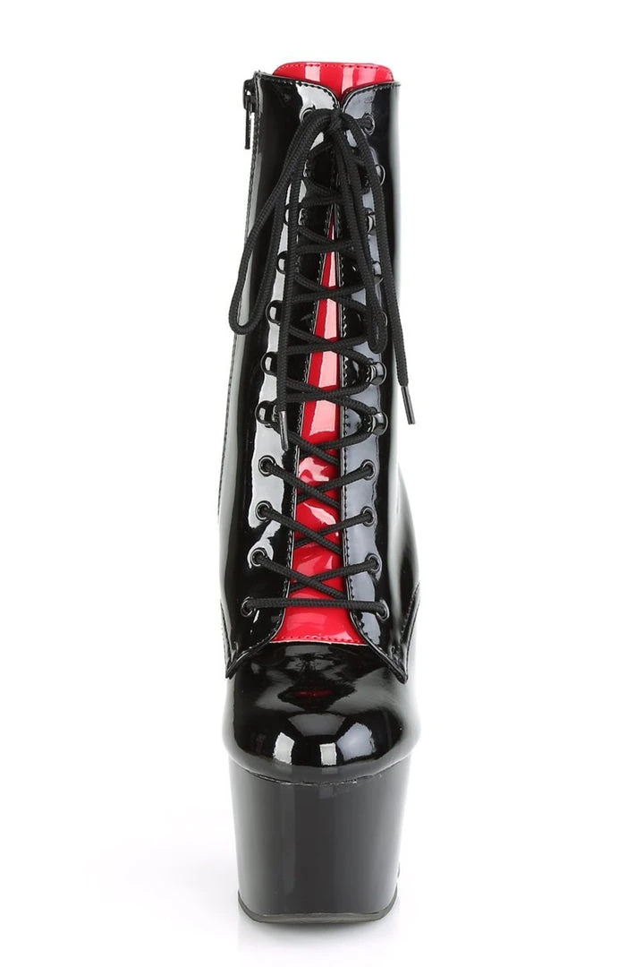 - Platform Two Tone Lace-up Front Ankle Boot with Interchangeable Color Tongues (Red & Black) and Corset Style Lacing on Platform Underside & at the Back, Inside Zip Closure