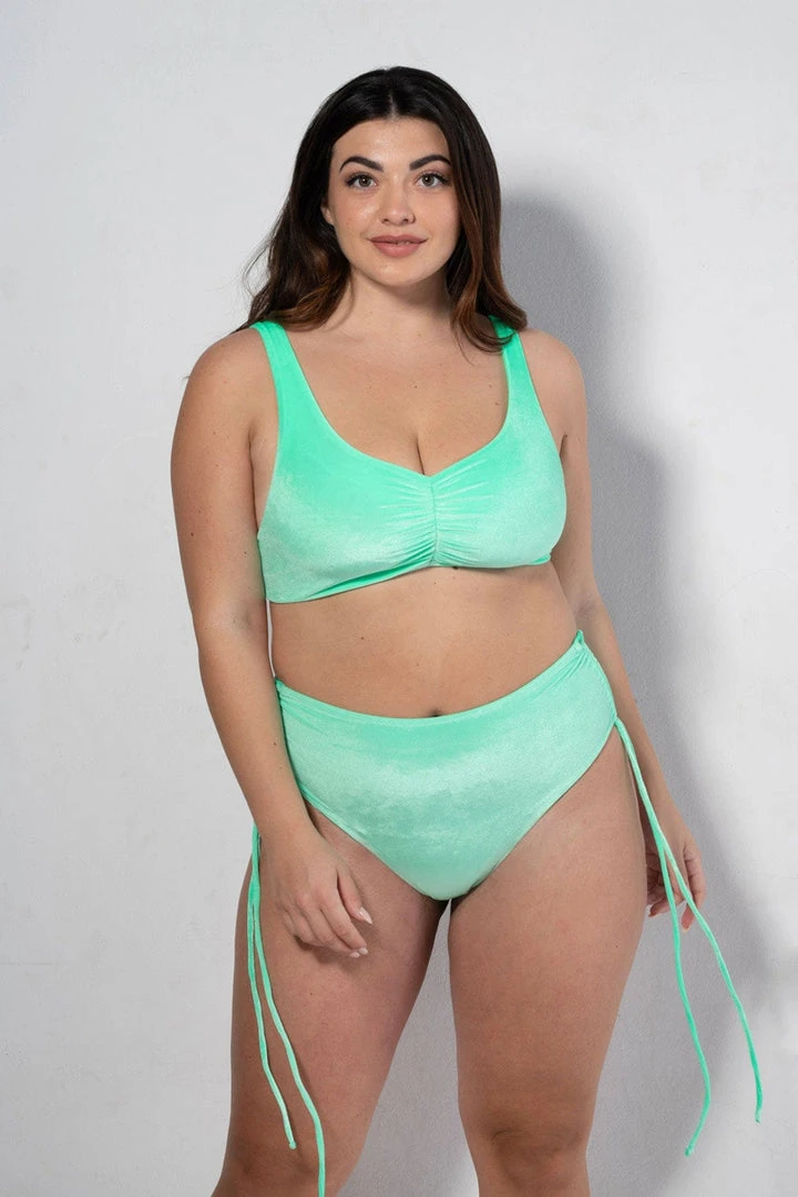 Paint your wardrobe with one of the most vibrant color this season. This is the brand new Moana top in velvet, YES VELVET, in the shade Apple Martini. This unique jelly green color is an instant mood lifter, made from luxurious creamy velvet; you’ll want to leave in it. Let’s us not forget that the Moana top offers regular support with thick over the shoulders straps and regular coverage with a flattering neckline.