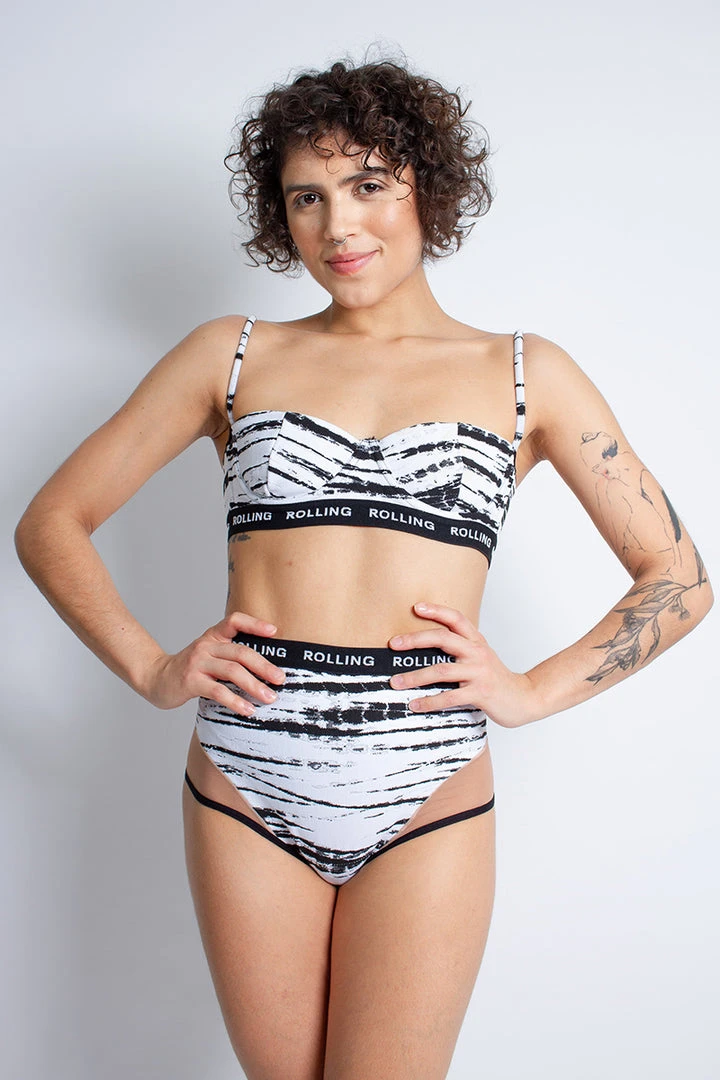 Styled with the Rolling Alpha Balconette Top in Zebra!