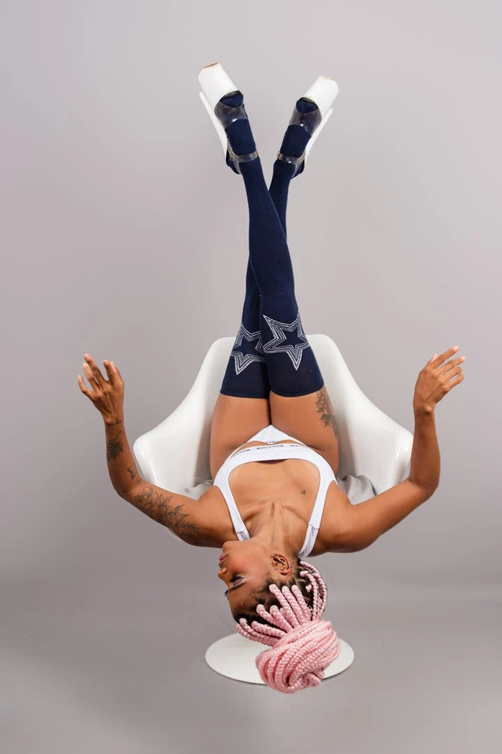 Escape from this crazy world and dance with the stars. Navy socks with white star design.